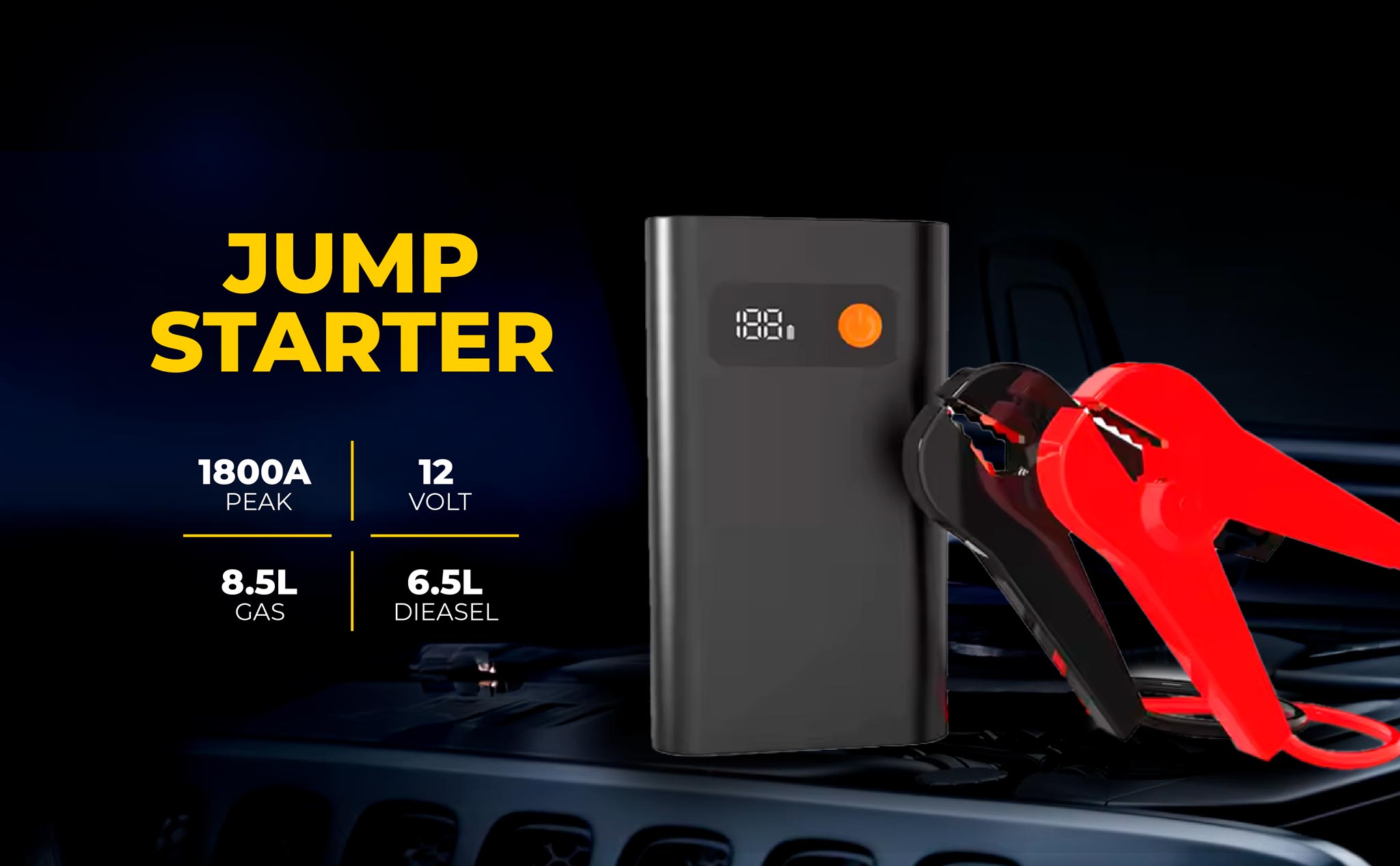 HIGH-PERFORMANCE JUMP STARTING: This jump starter’s powerful 1800 A peak current quickly starts low-voltage and fully-drained batteries. The car jumper starter portable pack can start 8.5 L gasoline or 6.5 L diesel engines.